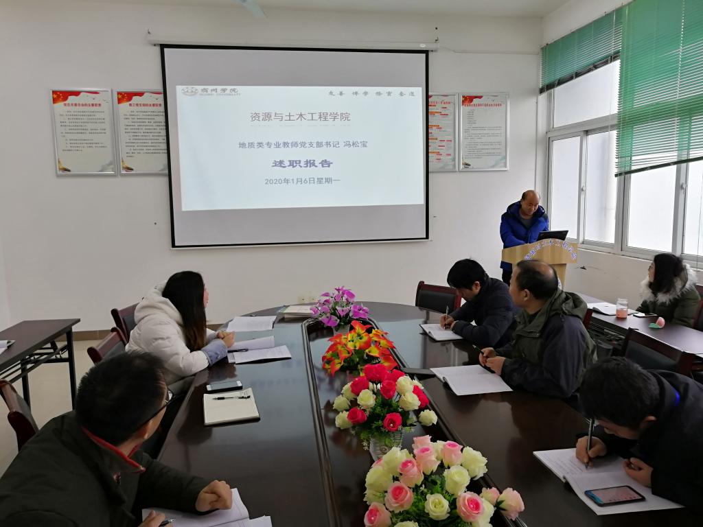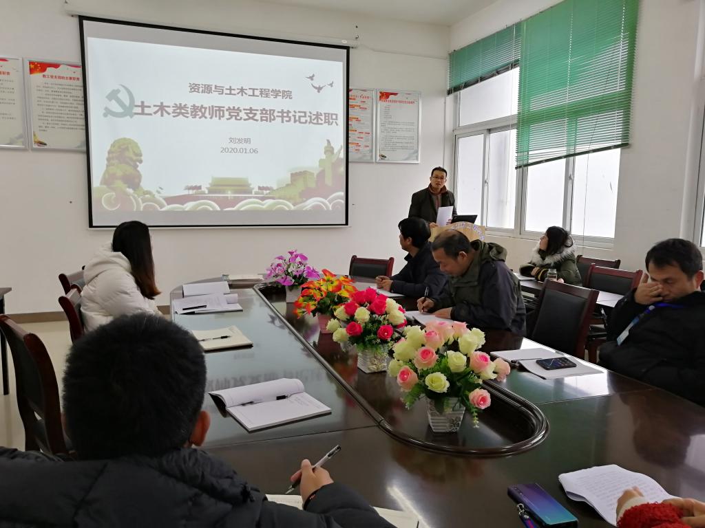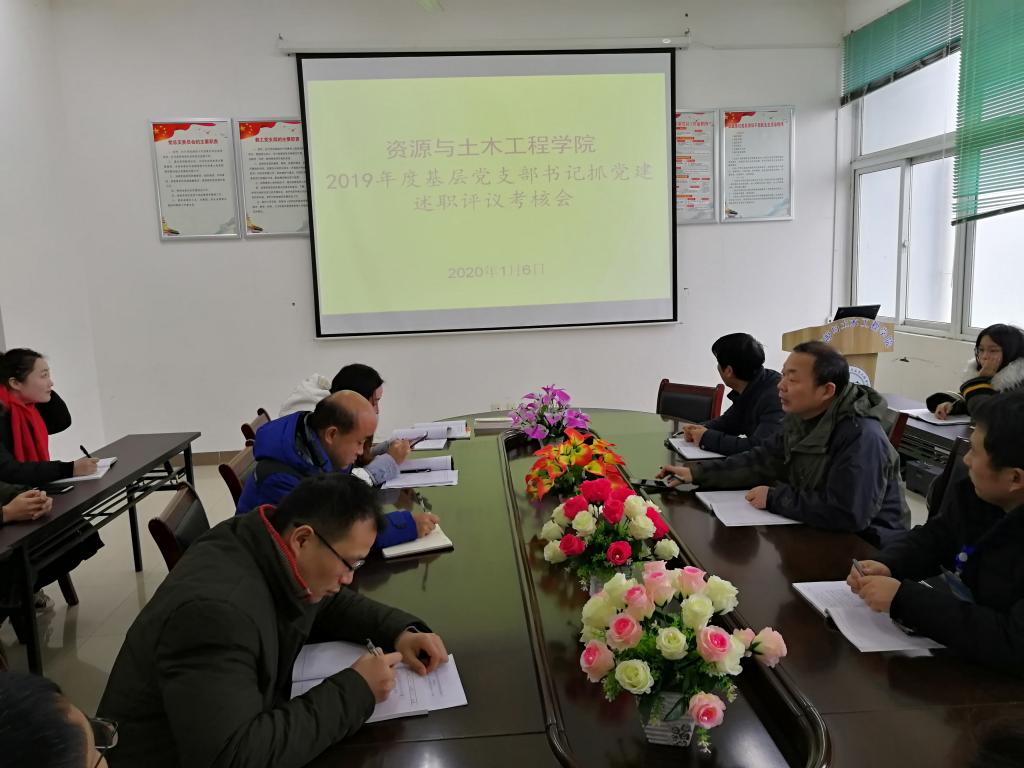 为进一步提升基层党建工作质量,推动全面从严治党向基层党组织延伸,促进基层党支部书记履行党建工作职责,落实支部党建工作主体责任和支部书记第一责任人职责,按照我校党委组织部《关于开展2019年度基层党支部书记抓党建述职评议考核工作的通知》(组字〔2019〕79号)的要求,2020年1月6日上午,资源学院党总支在工A314会议室召开2019年度基层党支部书记抓党建述职评议考核会。学院党总支委员、师生党支部书记、党支部委员及师生代表参加会议,党总支书记刘领主持会议。