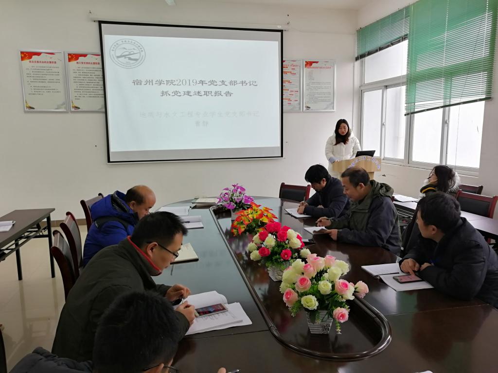 会上,教师支部书记刘发明、冯松宝,学生支部书记曹静、何爱霞、陈征征分别述职,内容包括:一是支部全年党建工作开展的情况、取得的成效。重点阐述了支部深入学习宣传贯彻习近平新时代中国特色社会主义思想、党的十九大和十九届四中全会精神情况,履行党建工作责任情况,组织开展“不忘初心、牢记使命”主题教育情况;贯彻落实党支部工作条例、党员教育管理工作条例情况; 推进基层党组织质量提升行动和基层党建“双创”工作开展情况,“五好”党支部创建,严格执行党内政治生活,落实“三会一课”等基本制度情况,深化基层党支部标准化建设,开展党支部建设提升行动情况;学习贯彻学校第三次党代会精神情况以及党组织和党员作用发挥情况等,注重体现支部书记的工作思路和作为。二是分析存在的问题和遇到的困难。逐条列出了支部党建工作中存在的主要问题和原因,分析了面临的实际困难;三是提出了解决问题的办法和具体措施、明确下一步加强支部建设的努力方向。