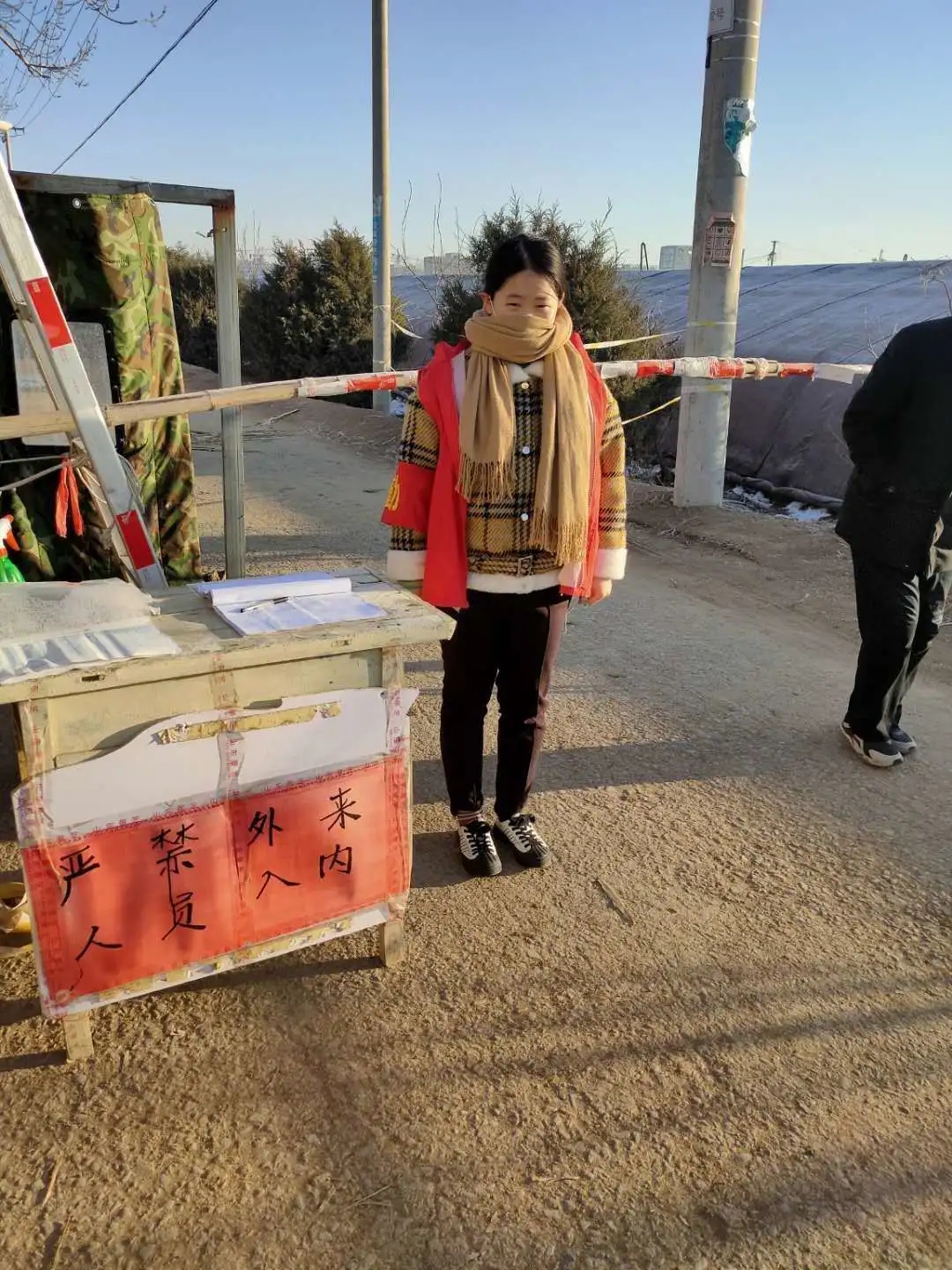 袁政莲同学在得知疫情暴发后第一时间向村长主动请缨参加防疫志愿服务工作。防疫期间,她每天帮助村里贴出疫情防控的最新通告,并对街上聚集闲聊的人进行劝返,向村里人宣传疫情的严重性及防疫工作的必要性。疫情虽险,但袁政莲同学积极地用行动温暖他人,鼓励大家一起战胜疫情的行为感动着村民。正是像她这样的一群人,用细心取得安心、用爱心凝聚力量,用信心决战疫情,默默为打赢疫情防控阻击战贡献着青春的力量!谈到每日的值班工作,她说:“虽然早上六点开始值班,天还不太亮就过去了,从七点开始登记过路的车辆,随着时间的流逝看着过路人员的信息一个一个填满,虽然天气很冷,但我的心里很暖和。”