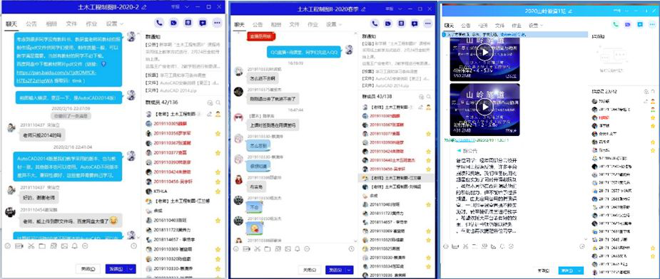 在做了充足的预估准备工作后,2月24日,资源与土木工程学院迎来了本学期本科线上教学的第一天,任课教师们主动担当,在掌握和运用学校提供的平台外,还充分利用腾讯课堂、腾讯会议、B站、YY语音等资源平台和采用多种教学活动方案,确保了教学活动正常、有序开展。与此同时,为了第一时间掌握学生学习情况,学院教学管理办公室主动联系学生,将学生收集的意见及时反馈给院长、系主任,由系主任牵头,不断完善、改进线上教学。