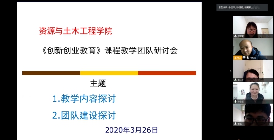 通过此次研讨会,确定课程内容安排,明确了线上授课计划与安排,为接下来《创新创业教育》的开展奠定了良好的基础。