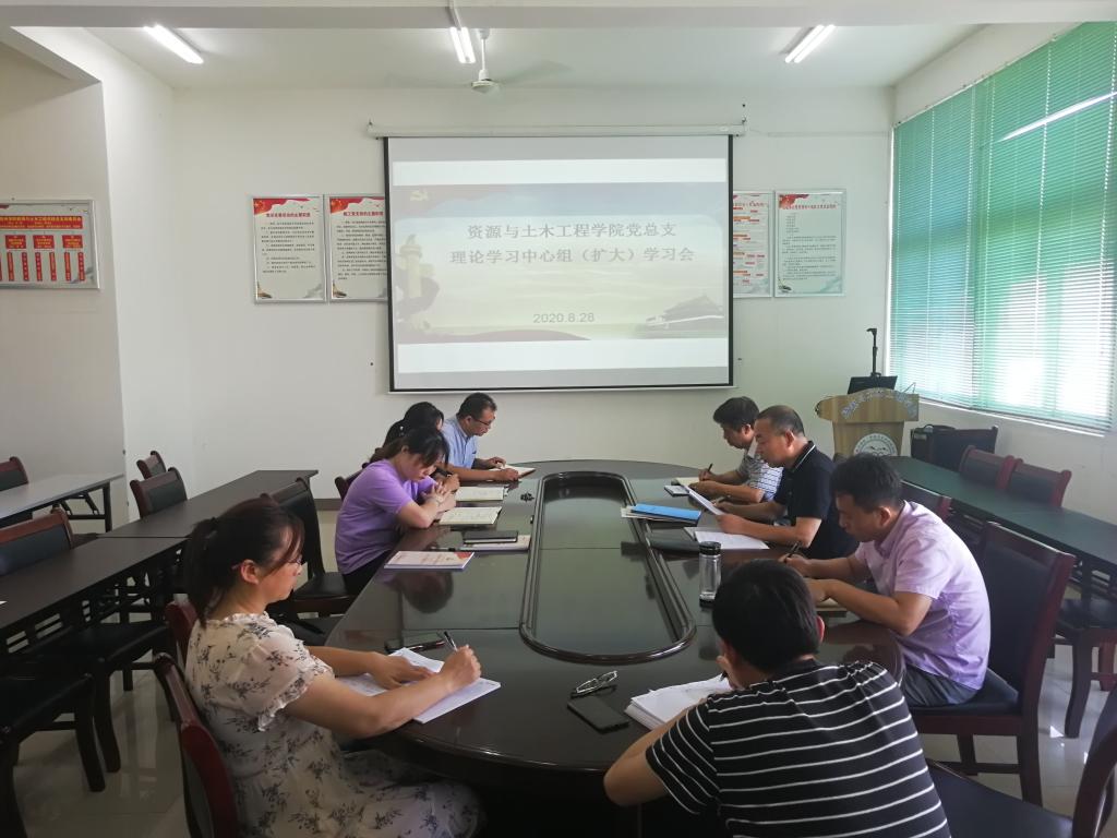 8月28日上午,资源与土木工程学院党总支在三楼会议室召开理论学习中心组(扩大)学习会。学院党总支理论学习中心组成员、党总支委员、科级干部、党支部书记参加会议,学院党总支书记刘领主持会议。