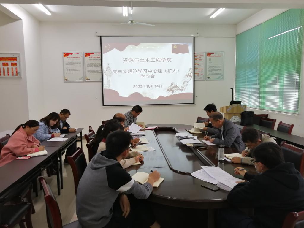 10月14日下午,资源与土木工程学院党总支在三楼会议室召开理论学习中心组(扩大)学习会。学院党总支理论学习中心组成员、党总支委员、党支部书记及教研室主任参加会议,学院党总支书记刘领主持会议。