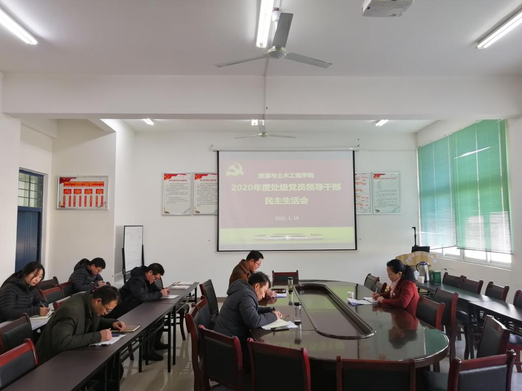根据中共宿州学院委员会《关于认真开好2020年度处级党员领导干部民主生活会的通知》(校党组字〔2021〕1号)要求,资源与土木工程学院于2021年1月19日在工科A楼314会议室召开了2020年度处级党员领导干部民主生活会。校党委组织部部长陈啸吟到会指导并作点评,资源学院班子成员、全体科级干部参会。张持堂主持会议。