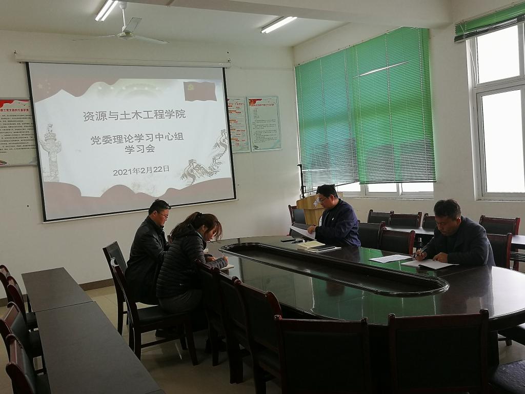 2月22日上午,资源与土木工程学院党委在三楼会议室召开理论学习中心组学习会。学院党委理论学习中心组成员参加会议。张持堂主持会议。
