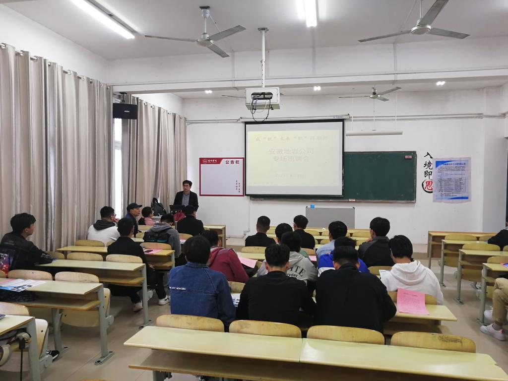 为进一步推进宿州学院“成就未来职得等待”就业宣传服务,提高就业工作实效,4月21日下午,资源学院邀请中煤三建33处和安徽地岩公司来校举行第二场宣讲招聘会。学院土木工程、地质工程、资勘工程、交通工程等专业毕业生积极前来应聘,部分大三学生聆听了宣讲。