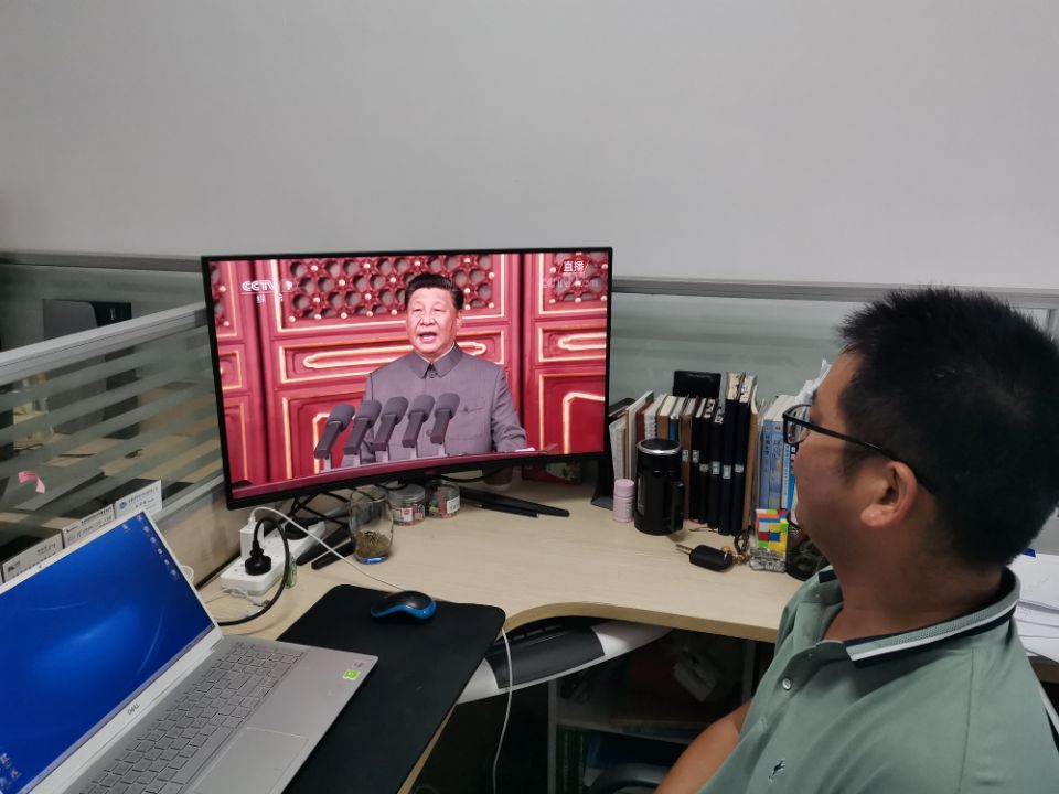 7月1日上午8时,庆祝中国共产党成立100周年大会在北京天安门广场隆重举行。中共中央总书记、国家主席、中央军委主席习近平发表重要讲话。在资源学院党员活动室、教室,宿舍,资源学院师生积极通过电视、网络、手机等渠道,认真收看收听仪式直播,深刻领会习近平总书记重要讲话精神。
