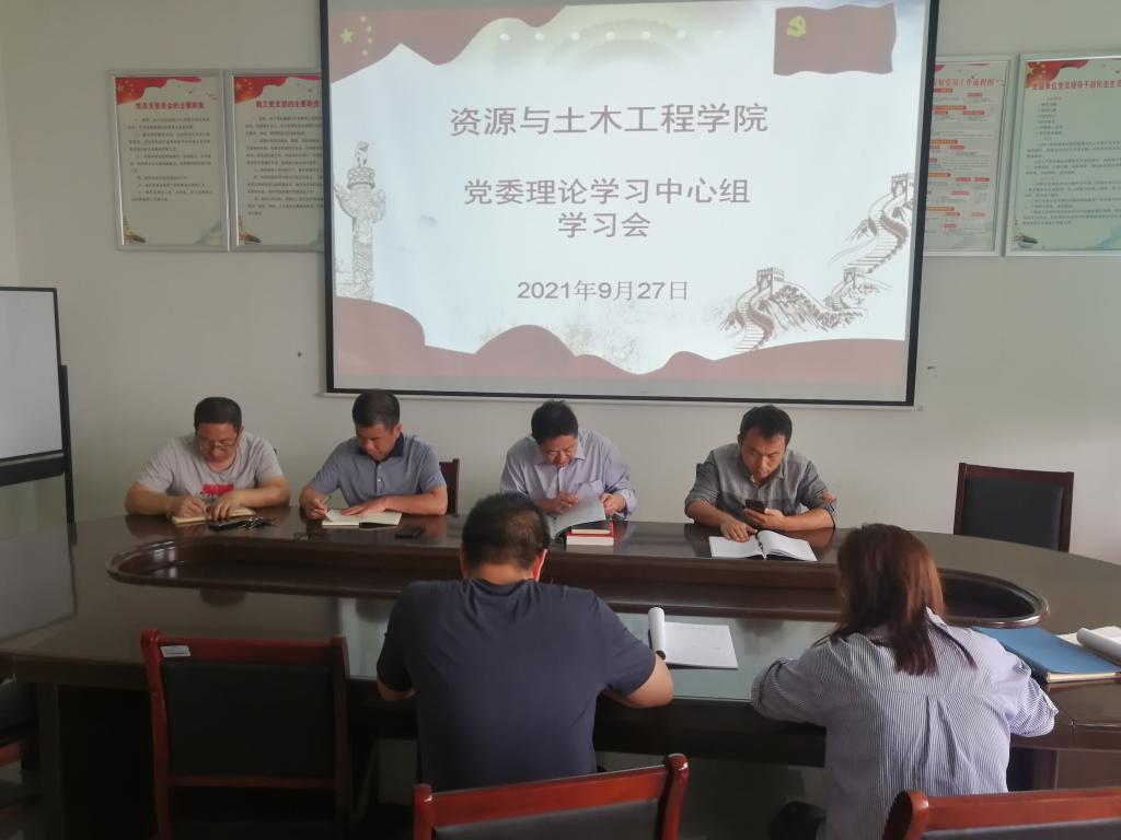 9月27日下午,资源与土木工程学院党委在三楼会议室召开理论学习中心组(扩大)学习会学习习近平关于伟大建党精神的重要文章。学院党委理论学习中心组成员、党支部书记、科级干部参加学习。学院党委书记张持堂主持会议。