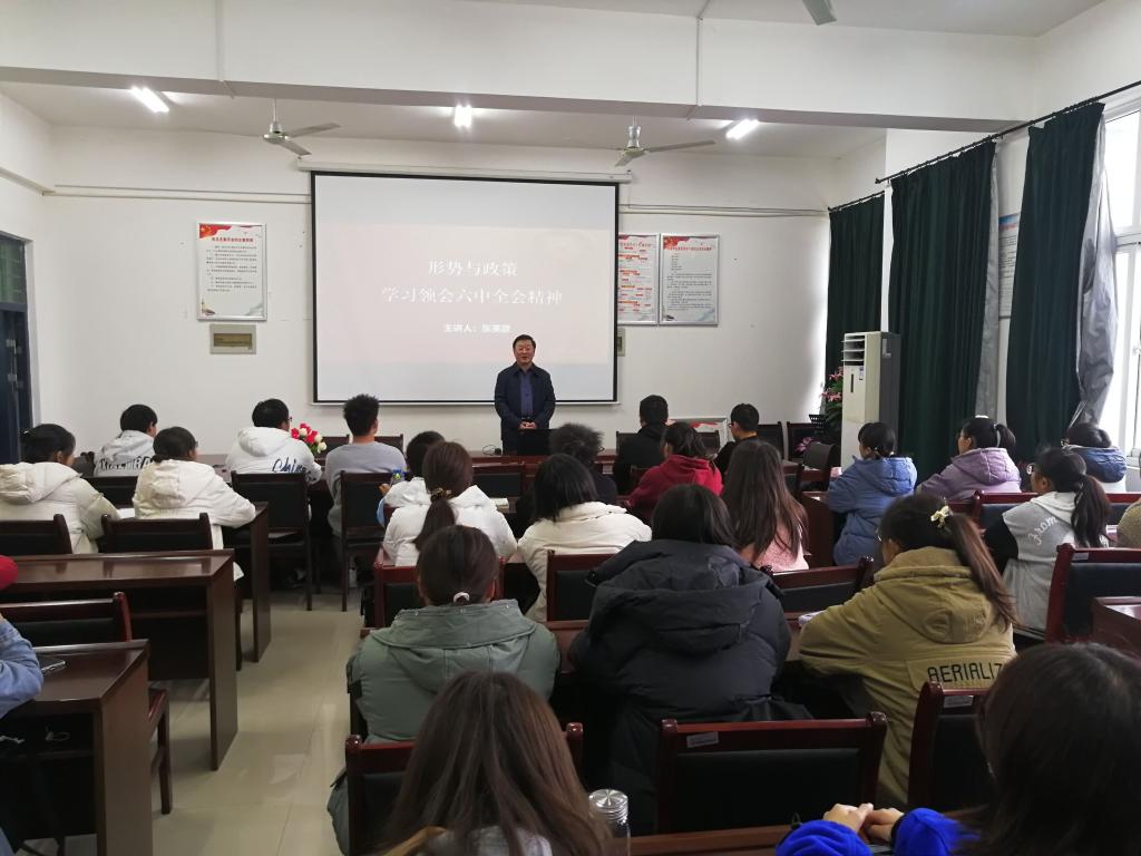 2021年11月29日下午,校党委委员、副校长张英彦在工科楼四楼会议室为资源与土木工程学院师生作形势与政策专题报告,宣讲党的十九届六中全会精神,学院教师代表、学生党员、入党积极分子代表及部分学生参加报告会。
