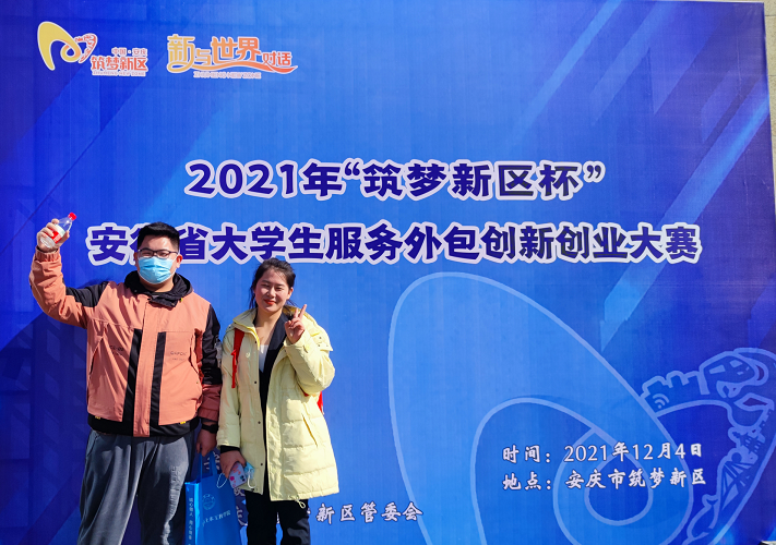 2021年12月3日,我院学生参加由安徽省教育厅主办,安徽财经大学、安庆筑梦新区管委会承办的 2021 年“筑梦新区杯”安徽省大学生服务外包创新创业大赛现场赛。