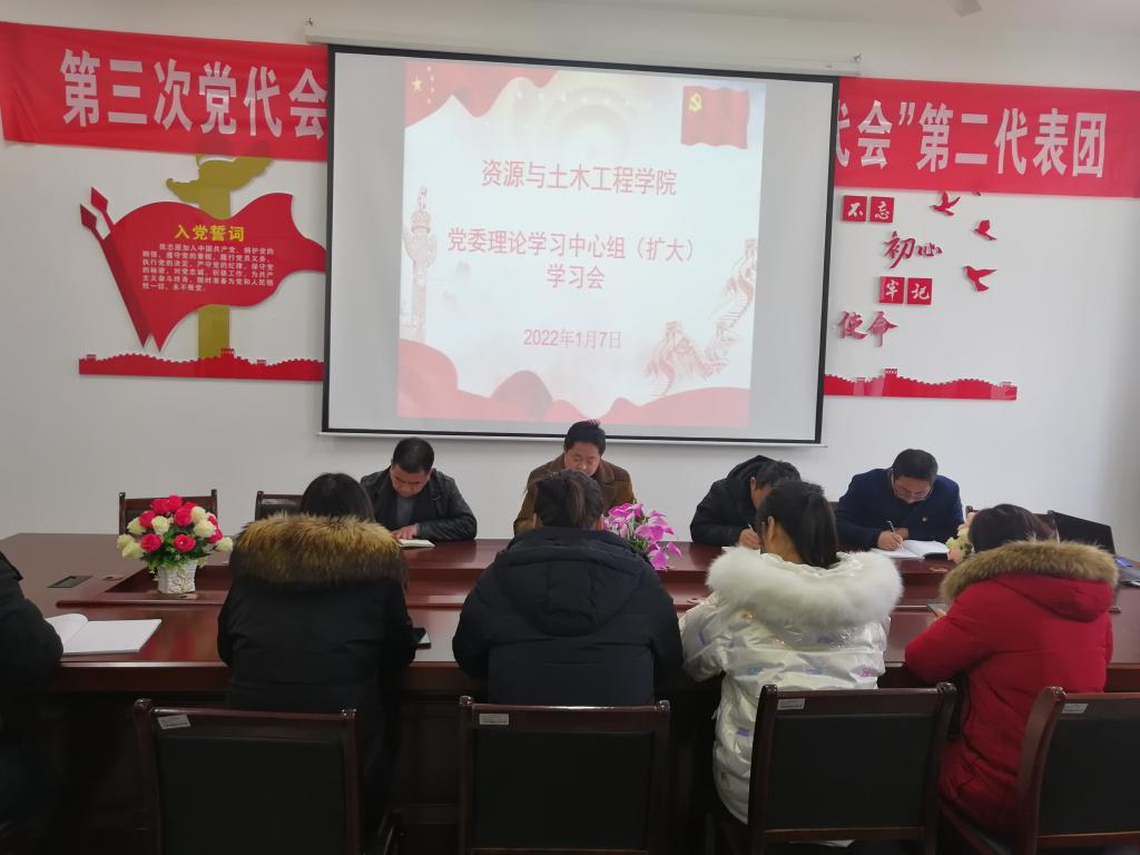 1月7日下午,资源与土木工程学院党委在会议室召开民主生活会会前学习会暨理论学习中心组(扩大)学习会。学院党委理论学习中心组成员、党支部书记参加会议。学院党委书记张持堂主持会议。