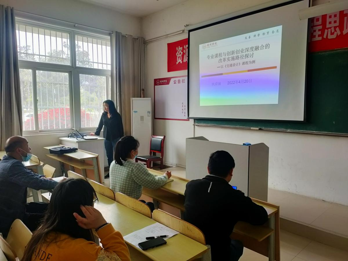 为进一步促进创新创业教育与专业教育的深度融合,提升我院教师综合素质,资源与土木工程学院于2022年4月20日下午2:00在工科楼A106会议室召开教师教学提升系列活动——专业课程与创新创业深度融合的改革实施路径探讨。活动邀请巩舜妹老师作了题为“专业课程与创新创业深度融合的改革实施路径探讨—以《交通设计》课程为例”的主题报告,交通工程教研室全体教师及部分其他教研室教师参加了报告会。