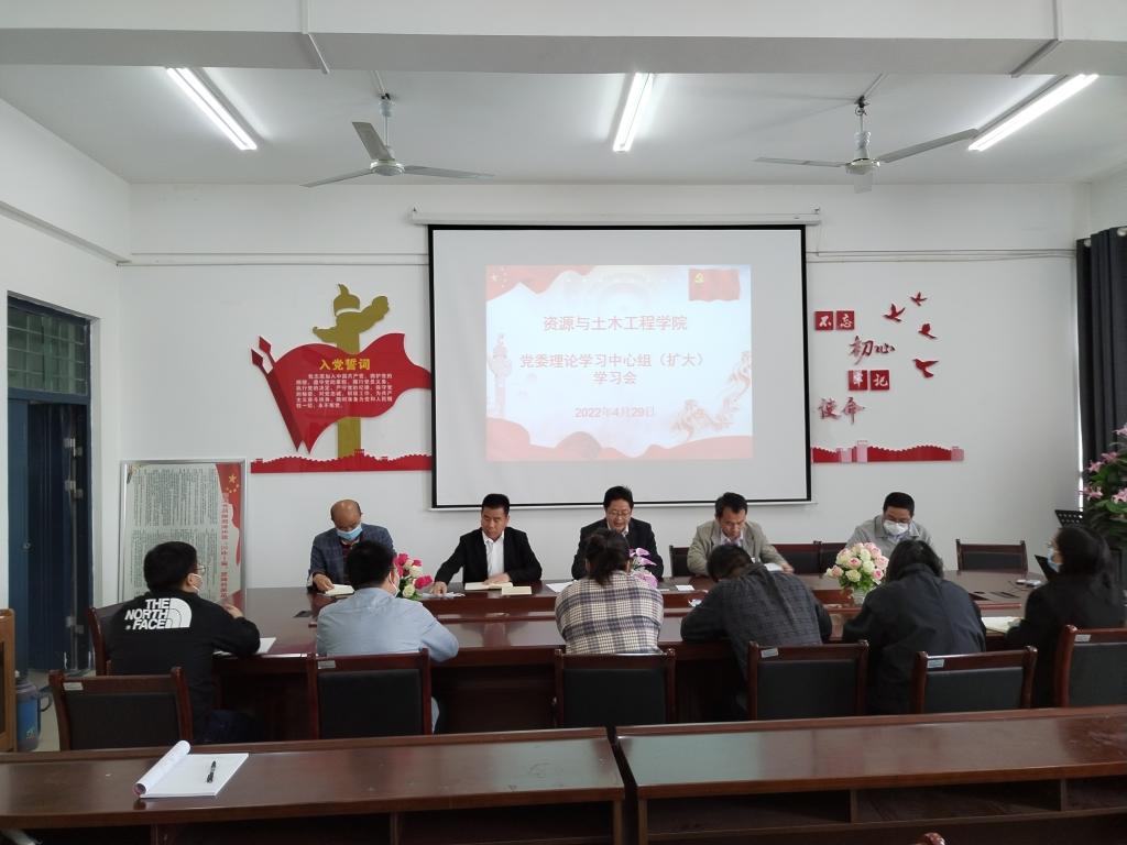 4月29日上午,资源与土木工程学院党委在会议室召开理论学习中心组(扩大)学习会,传达学习习近平总书记考察中国人民大学重要讲话精神。学院党委理论学习中心组成员、党支部书记参加会议。学院党委书记张持堂主持会议。