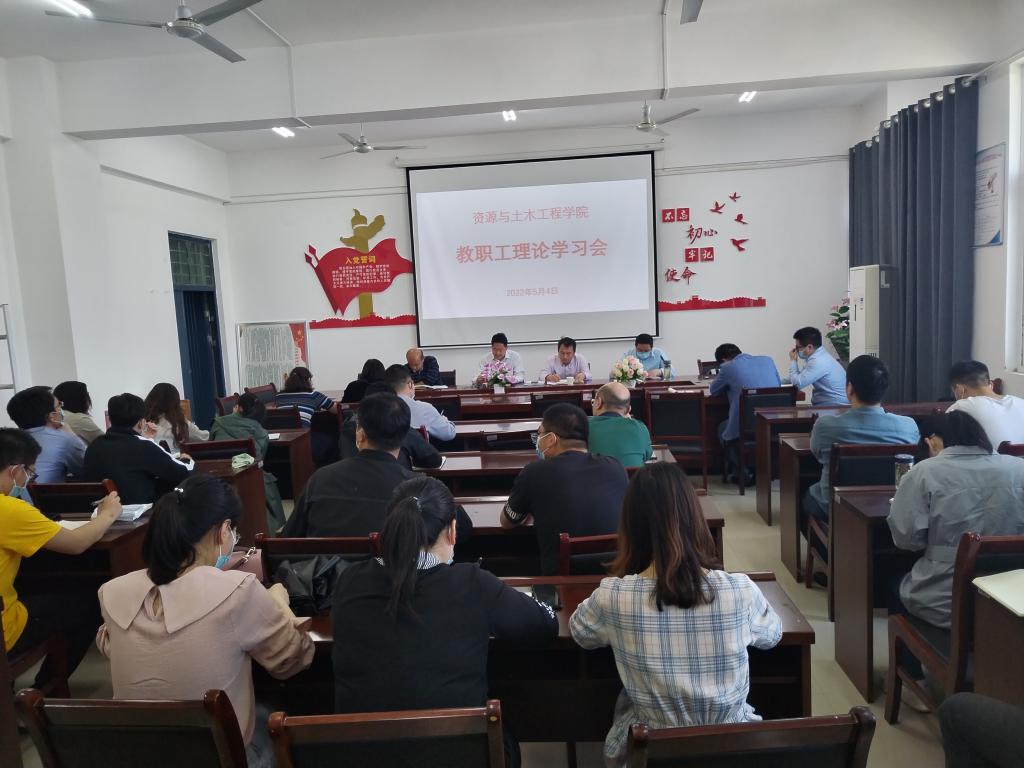 5月4日下午,资源与土木工程学院在工A402会议室召开教职工理论学习会,认真学习习近平同志《论党的宣传思想工作》并开展师德师风教育。党委书记张持堂主持会议,全体教职工参加学习。