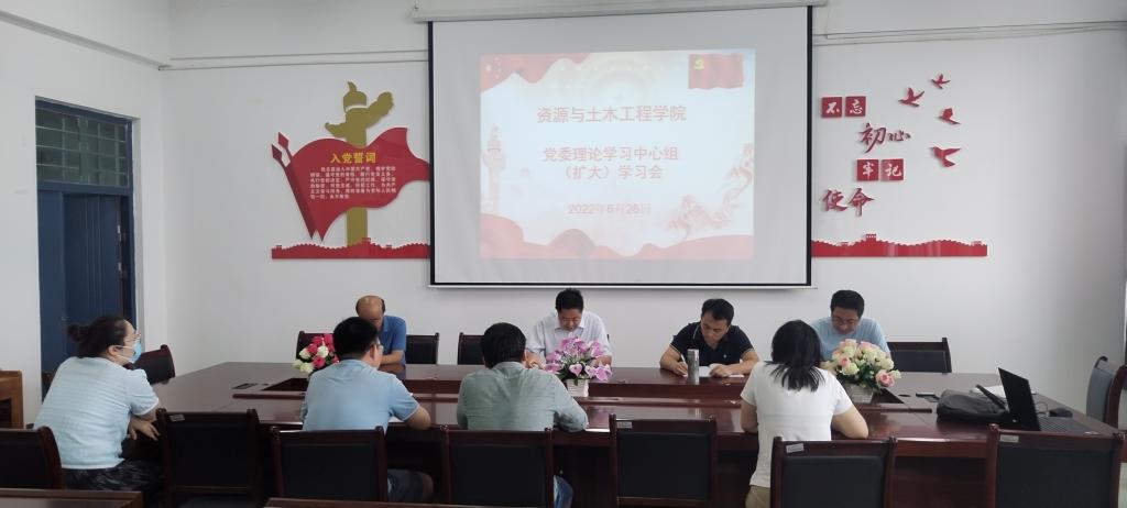 6月28日上午,资源与土木工程学院党委在会议室召开理论学习中心组(扩大)学习会,学习习近平总书记勉励南京大学留学归国青年学者的回信、考察四川讲话精神及《百年大党面对面》的相关章节。学院党委理论学习中心组成员、党支部书记参加会议。学院党委书记张持堂主持会议。