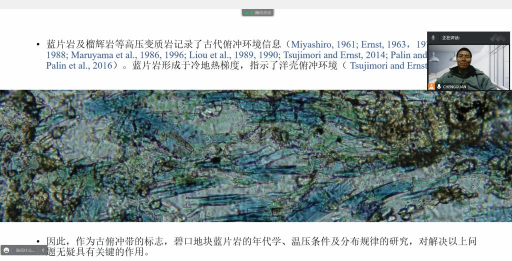 2022年12月31日,资源与土木工程学院许晨光老师通过腾讯会议(455-631-3010)为20级地质工程专业学生做了题为“扬子板块西北缘碧口蓝片岩大地构造意义”的学术报告。