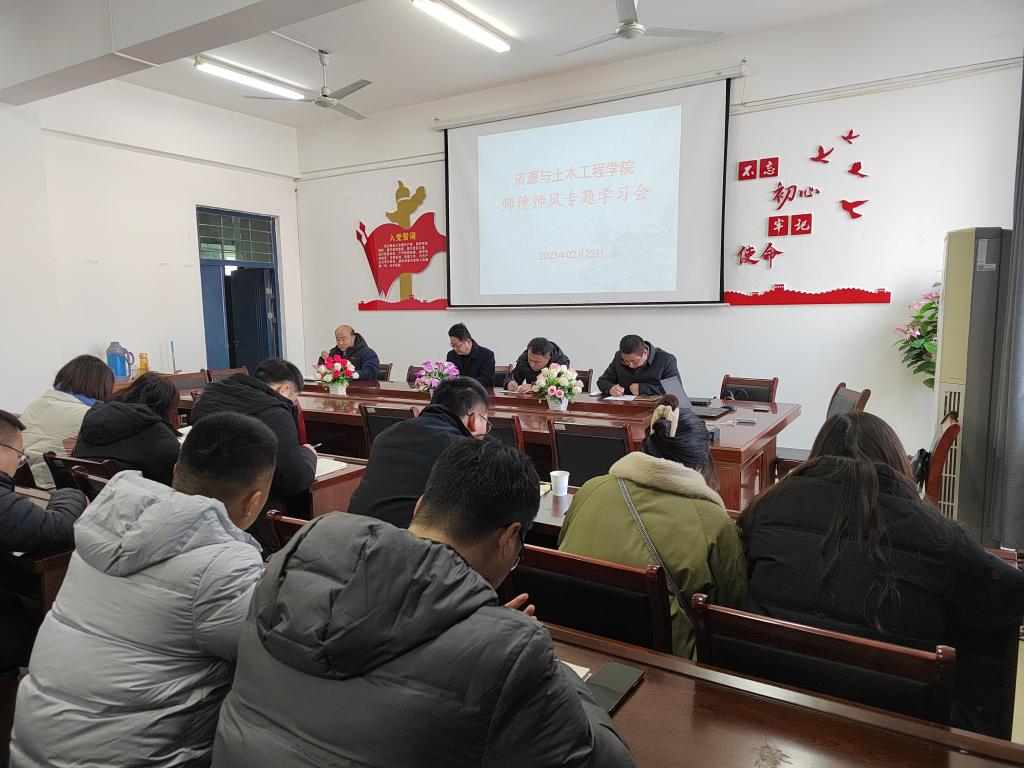 2月22日下午,资源与土木工程学院在工A402会议室召开教职工理论学习会暨师德师风专题学习会,深入学习党的二十大精神和《高等学校教师职业道德规范》等。党委书记张持堂主持会议,全体教职工参加学习。