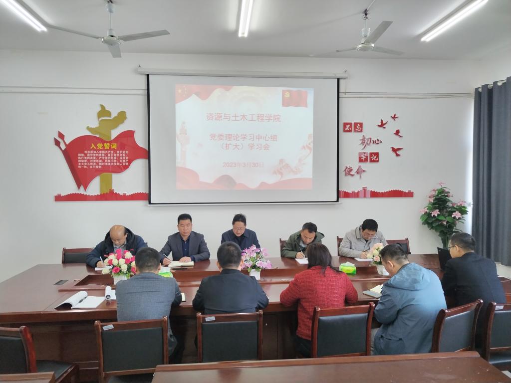 3月30日上午,资源与土木工程学院在工A402会议室召开党委理论学习中心组(扩大)学习会,学院党委理论学习中心组成员、党支部书记及科级干部参加会议。学院党委书记张持堂主持会议。