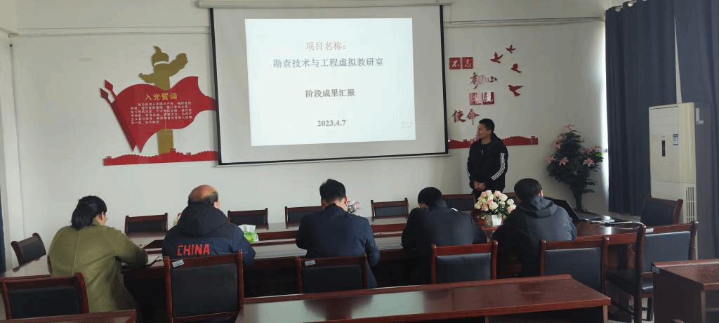 2023年4月7日上午,勘查技术与工程虚拟教研室项目阶段性成果交流会如期举行。资源与土木工程学院教学副院长冯松宝,虚拟教研室成员林曼丽、姜玮、巩舜妹、陶威、李士胜、胡儒等参与会议交流。会议由虚拟教研室负责人冯松宝副院长主持,重点介绍了虚拟教研室的构建意义及组员构成情况,紧接着由胡儒博士进行了虚拟教研室建设相关内容汇报。
