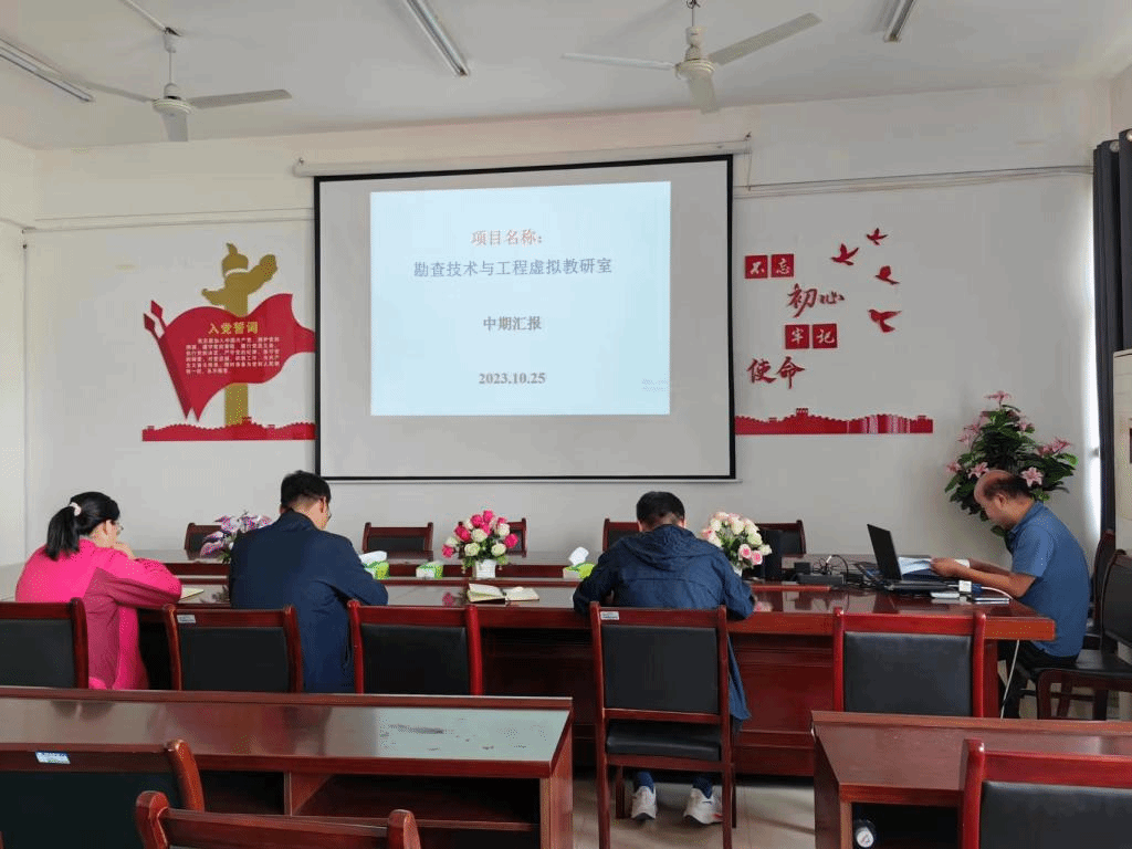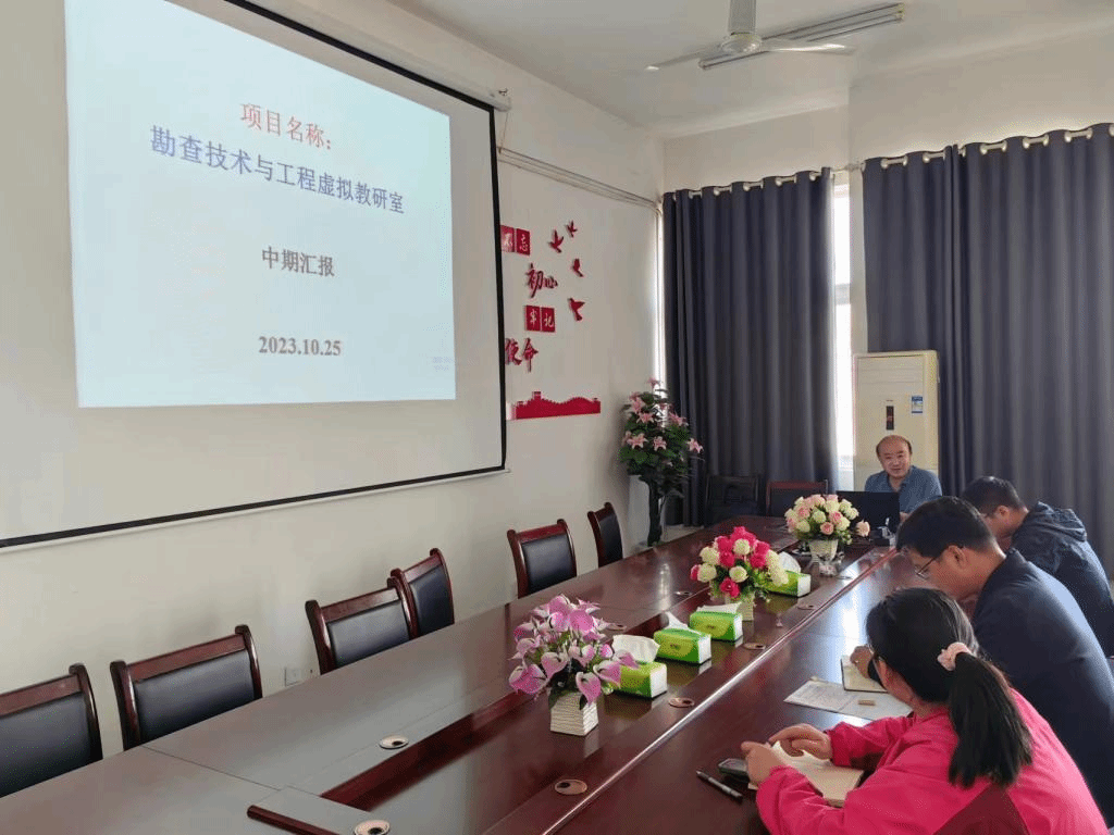 2023年10月25日上午,由资源与土木工程学院勘查技术与工程虚拟教研室项目中期交流会如期举行。资源与土木工程学院教学副院长冯松宝,虚拟教研室成员林曼丽、陶威、李士胜、胡儒、姜玮等老师参与会议交流。会议由资源勘查技术与工程专业虚拟教研室负责人冯松宝副院长主持,并做了《勘查技术与工程虚拟教研室》项目中期汇报。