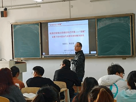 2023年11月14日,资源与土木工程学院于实训楼A607举办了“五育”双创大讲堂活动,邀请中联煤层气有限责任公司张文忠首席工程师做了题为“能源的饭碗必须端在自己手里—“双碳”背景下的中国油气供需形势和解决途径”的专题报告。资源与土木工程学院院长陈松、科研副院长王明梁及相关师生参加本次活动。