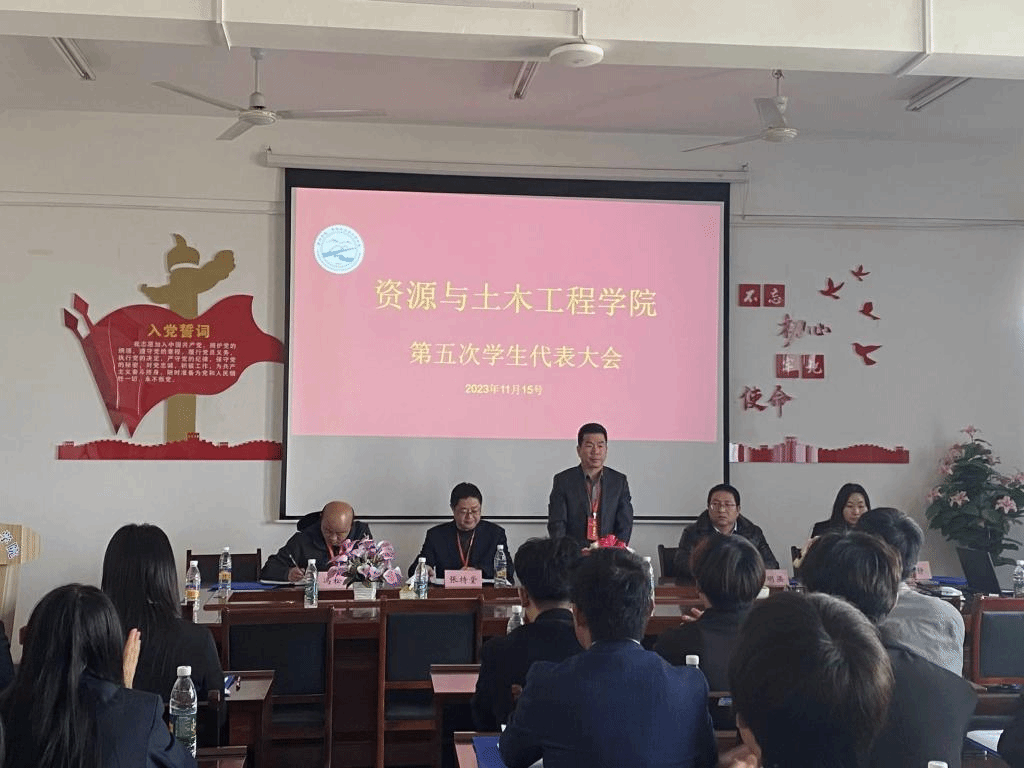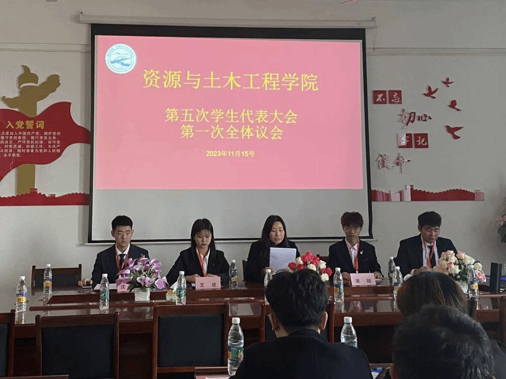 本次会议共有六项议程。在雄伟庄严的国歌中,资源与土木工程学院第四次学生代表大会正式开幕大会开始。先由张持堂代表资源与土木工程学院致开幕词,对学生会这段期间的工作表达了肯定,同时表达了对下一届学生会成员美好的期望。院领导听取、审议上一届资源与土木工程学院分团委学生会工作报告,随后开始讨论通过关于资源与土木工程学院学生会工作展望的相关事项。