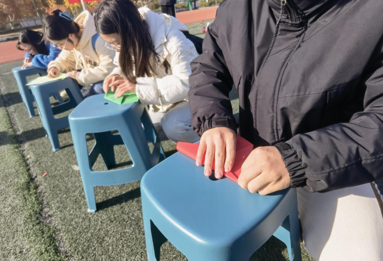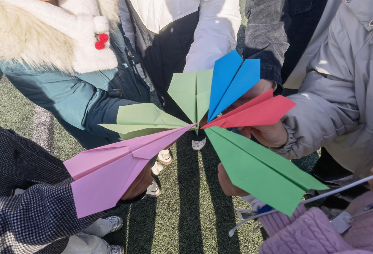 沐浴着冬日暖阳,选手们进入了紧张的比赛阶段。根据记忆中的纸飞机形象,同学们有条不紊地翻动着手中的彩纸,不一会儿一个个形态各异的纸飞机呈现在眼前,引来阵阵称赞。接着是放飞环节,同学们卯足了劲,向着太阳的方向投掷出去,纸飞机在空中划出一道道美丽的弧线,引来阵阵欢呼。