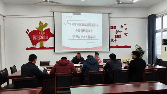 资源与土木工程学院副院长冯松宝、教学秘书赵景宇、地质工程教研室主任魏强、水文与水资源工程教研室主任付敦、教师代表陶威参加调研,学校教学督导委员会曹稳根督导、陈黎黎督导受到了资源与土木工程学院热烈欢迎。会上,就资源与土木工程学院在年轻教师提高课堂教学质量、加强教学质量监控方面有何举措、成效如何、实施此项工作过程中存在哪些困难或问题进行了深入交流。