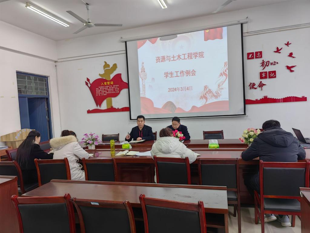 3月4日上午,资源与土木工程学院在工A402会议室召开学期初辅导员工作会议。党委书记张持堂、党委副书记、纪委书记徐国庆以及全体辅导员参加了会议,会议由张持堂主持。