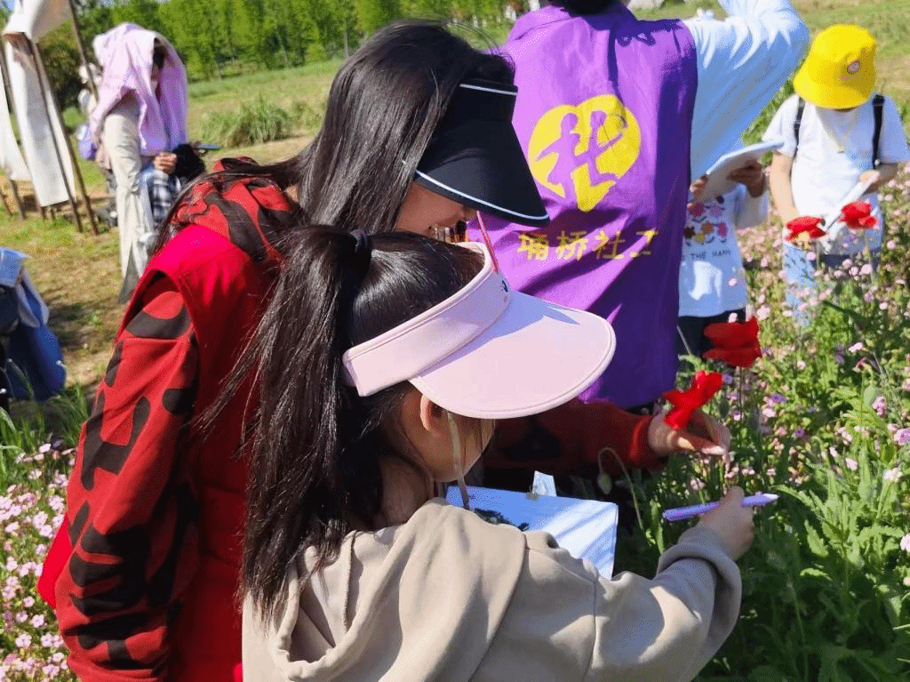 4 月 27 日,资源与土木工程学院社会责任教育中心“微光”志愿者开展了泰康社区植物园春游助教志愿服务活动。