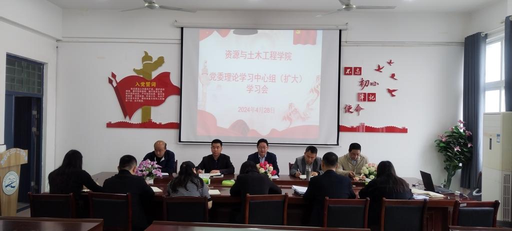 4月28日上午,资源与土木工程学院召开党委理论学习中心组(扩大)学习会。会上深入学习了习近平总书记关于党纪学习教育的重要讲话和重要指示批示精神。学院党委书记张持堂主持会议。学院党委理论学习中心组成员、科级干部参加学习会。