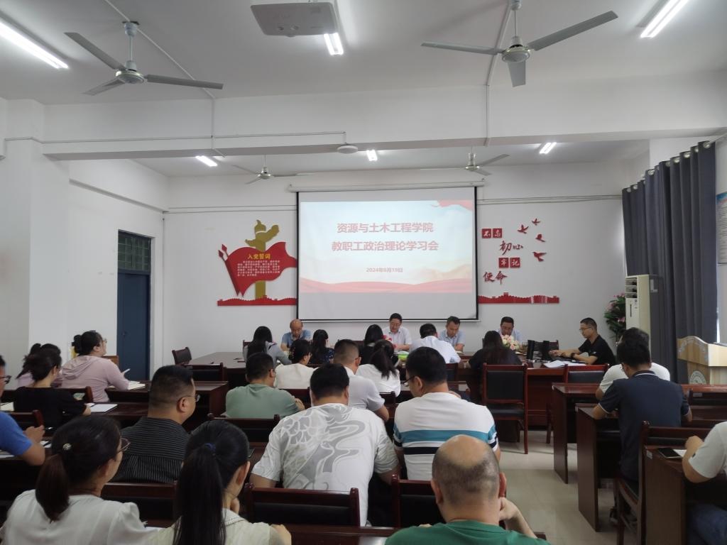 6月19日下午,资源与土木工程学院在工A402会议室召开教职工理论学习会,深入学习习近平总书记关于就业工作的重要讲话精神,并传达学习了中办国办印发的《关于全面加强和改进新时代学校体育工作的意见》。学院党委书记张持堂主持会议,全体教职工参加学习。