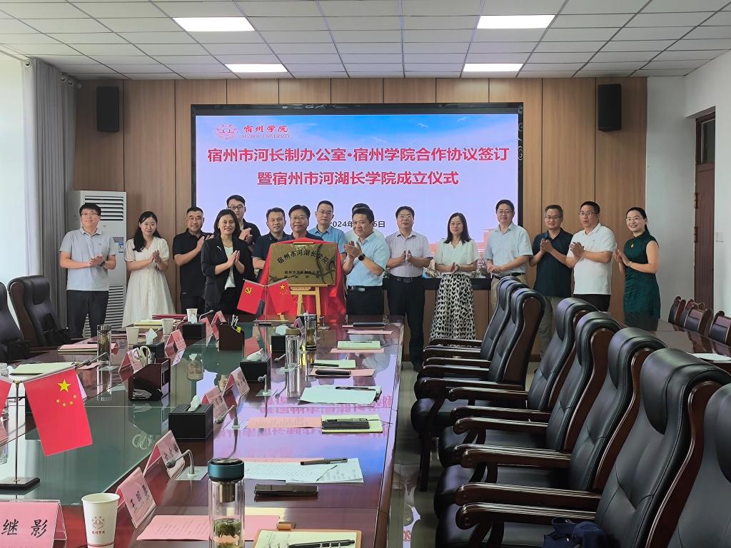 2024年7月26日,由宿州市河长制办公室与我校共建的宿州市河湖长学院在我校教育园区校区揭牌成立。副校长杨维志、安徽省全面推行河长制办公室二级调研员任国燕,宿州市河长制办公室副主任、市水利局局长孙洲,市水利局副局长汪亚光等出席揭牌仪式。资源与土木工程学院及相关职能部门负责人参加活动。