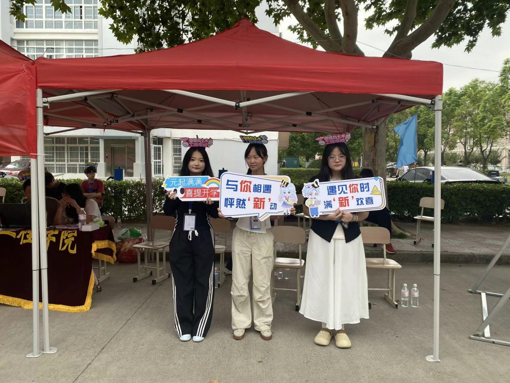 在此前的迎新工作会上,学院老师多次强调,迎新不仅是对新生的欢迎,更是对他们未来学习与生活的美好期许。因此,从迎新环境的布置到迎新流程的设计,再到志愿者的培训,每一项工作都力求完美,旨在让新生从踏入校门的那一刻起,就能感受到家的温暖和学院的关怀。9月6日,在多名志愿者的帮助下,迎新工作站搭建完成,用可爱的头饰展现我院活泼可爱的热心风气,用充满祝福语的标牌表达对新同学未来的期许和鼓励,既体现了学院的热情好客,又彰显对教育事业的崇高敬意。