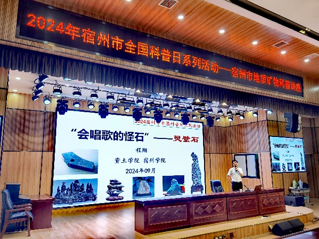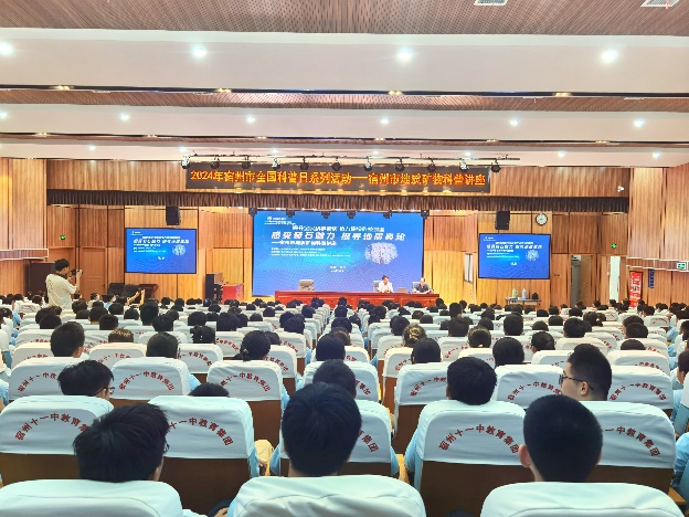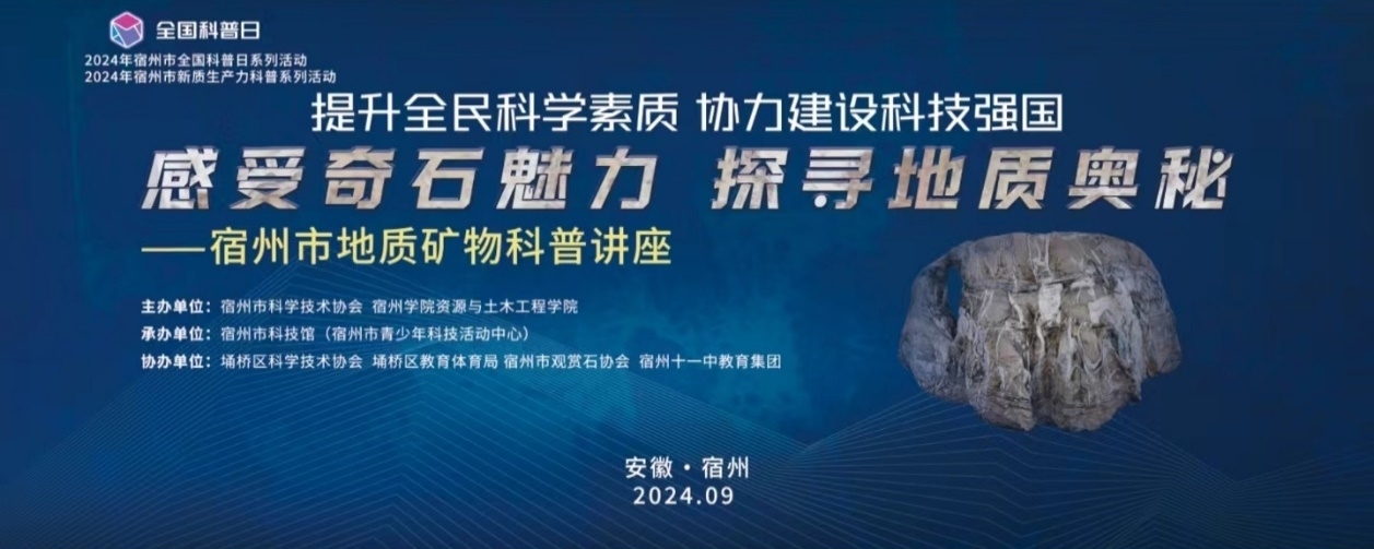 为提升全民科学素质,协力建设科技强国,宿州市科学技术协会和宿州学院资源与土木工程学院联合开展2024年宿州市全国科普日系列活动。9月29日,资源与土木工程学院副院长王明梁教授和程翔博士赴宿州十一中教育集团银河四路校区,为该校八年级的全体学生开展以“感受奇石魅力,探寻地质奥秘”为主题的地质矿物科普讲座。