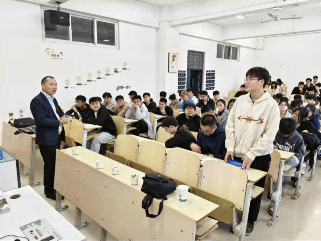王明梁首先对祝磊院长一行的到来表示热烈欢迎,就同学们关心的未来职业规划情况,特别是针对目前计划与准备考研的相关事宜进行了针对性说明,从个人发展的角度鼓励各位同学继续升学深造。