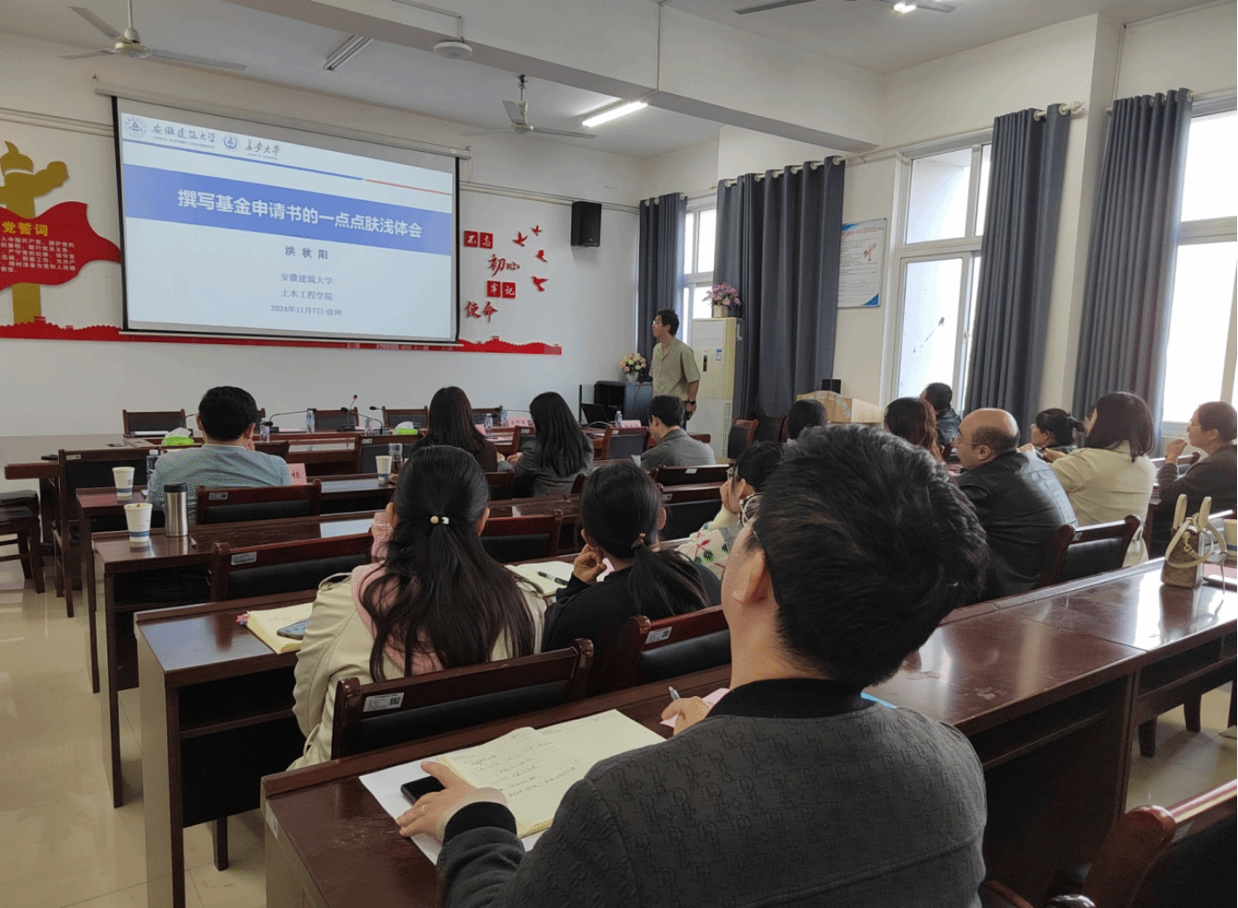 为提高资源与土木工程学院教师科研创新能力和水平,做好2025年度国家自然科学基金申报工作, 11月7日,学院邀请安徽建筑大学土木工程学院党委书记王媛、副院长陈东、副院长施国栋、工程力学教研室主任徐沛保及洪秋阳博士一行来院做学术讲座交流,交流会在工A402举行,资源与土木工程学院院长方雪梅、副书记贾学彬、副院长王明梁、冯松宝及学院全体教师参加了本次交流会。