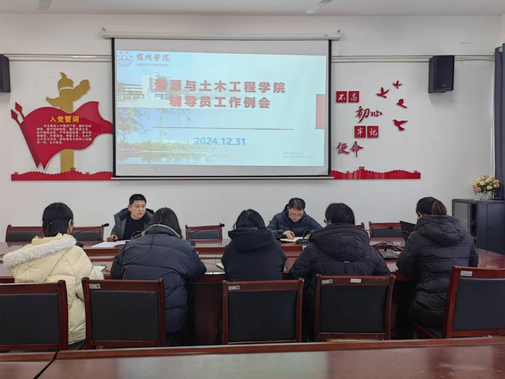 12月31日下午,资源与土木工程学院在工A402会议室召开24-25学年第一学期期末辅导员工作会议。院党委书记孙裕金、党委副书记贾学彬以及全体辅导员参加了会议,会议由孙裕金主持。