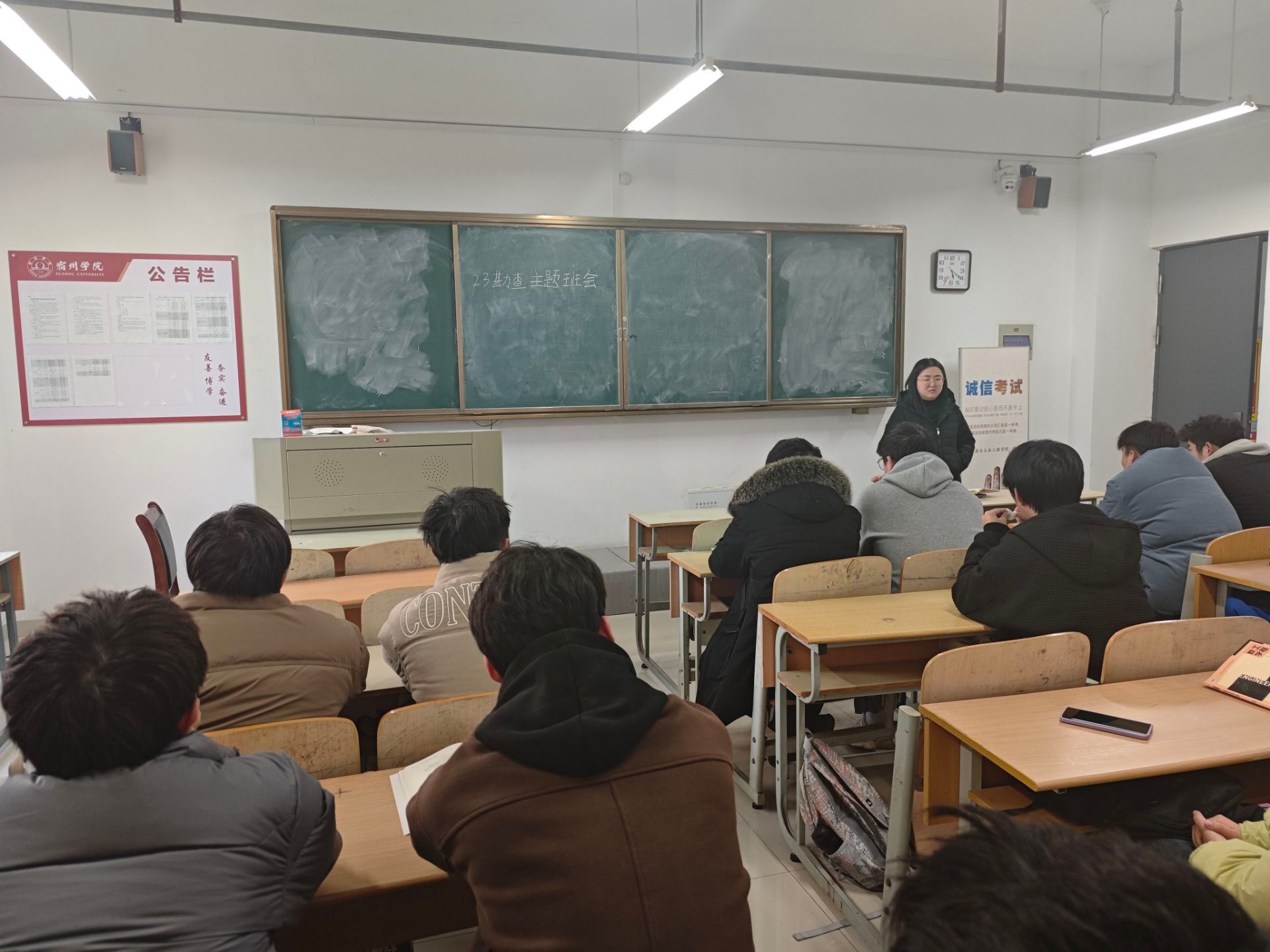 班会中依靠一些身边的案例以及科普一些比赛、活动等提高同学们对学风建设重要性的认识,增强学习的自觉性和主动性。回顾下上个学期的学习成绩以及上课情况总结班级当前学风状况,发现存在的问题并共同探讨解决方案,同时带领同学们继续学习学业指导手册,帮助了解创新创业学分、社责学分认定文件,以及毕业要求,希望同学们能自觉学习,积极参加各类活动、比赛和社会实践,在实际的学习和实践中提升自身能力。营造班级积极向上、严谨认真的学习氛围,促进班级整体学习成绩的提升。要求每个寝室能自觉遵守寝室公约,共同维护干净整洁的寝室卫生和积极的学习氛围。最后集中学习了《审核评估应知应会手册》,以优良的学风迎接本科教育教学审核评估。