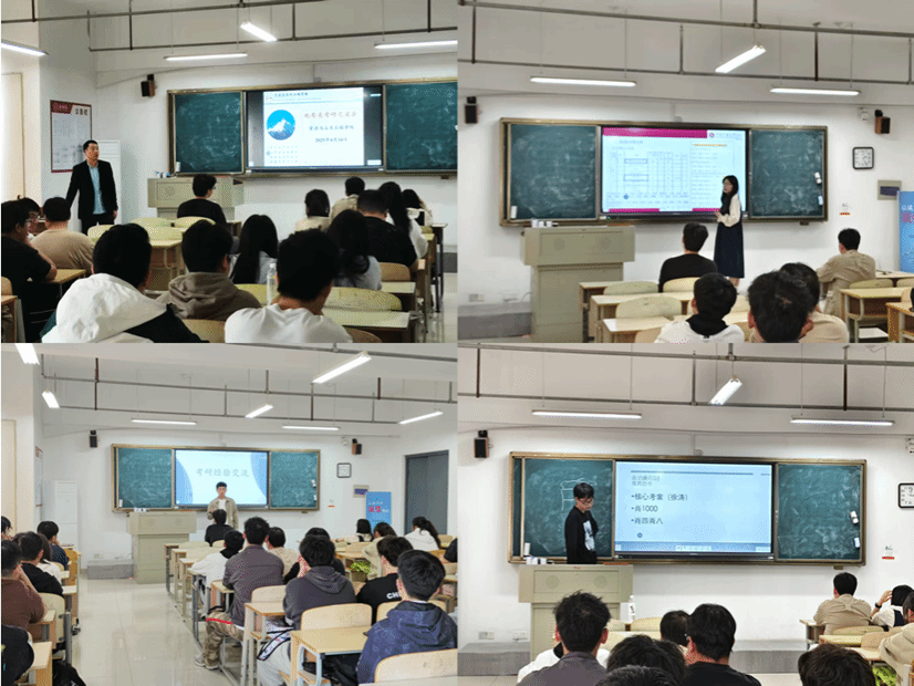 随后,赵孔雨、沈孝珂、柳振宇三位同学就中国矿业大学(北京)、中国海洋大学和中国石油大学(北京)三所学校,从考研学校选择、参考书目、时间安排、复试准备等方面做了详细的讲解。
