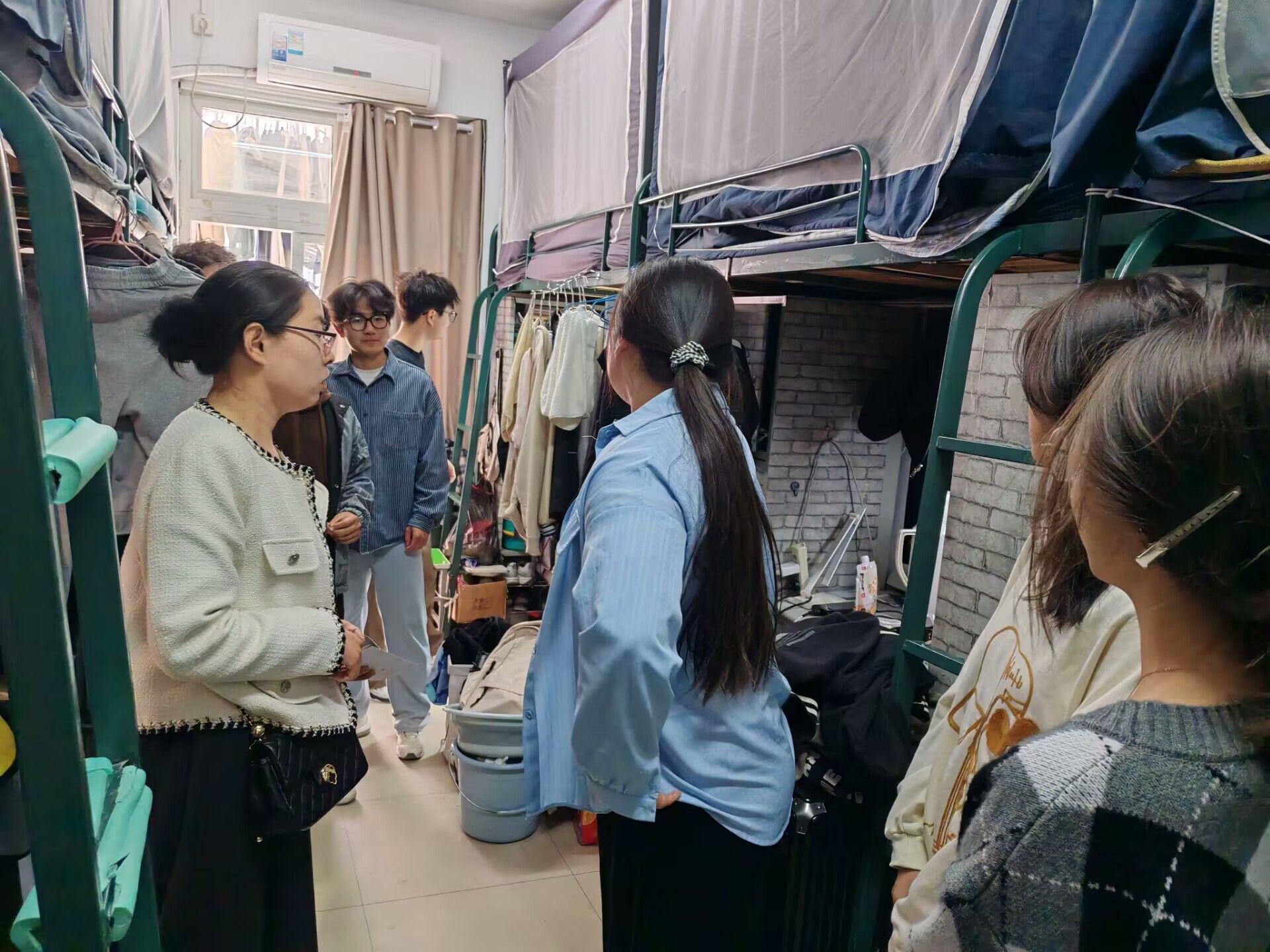 分组进入男生、女生宿舍,重点对寝室卫生状况、用电安全以及是否使用大功率电器进行检查,对于宿舍中存在的安全隐患行为进行及时地制止以及改正。督促学生自觉养成良好的生活习惯,注意春季传染病的传播,重视个人身体健康。提醒同学们要注意防范电信诈骗,提高安全意识,谨防上当受骗。在检查过程中,还与同学们进行了亲切交流,了解他们目前遇到的问题和困难,并积极给予帮助和建议。