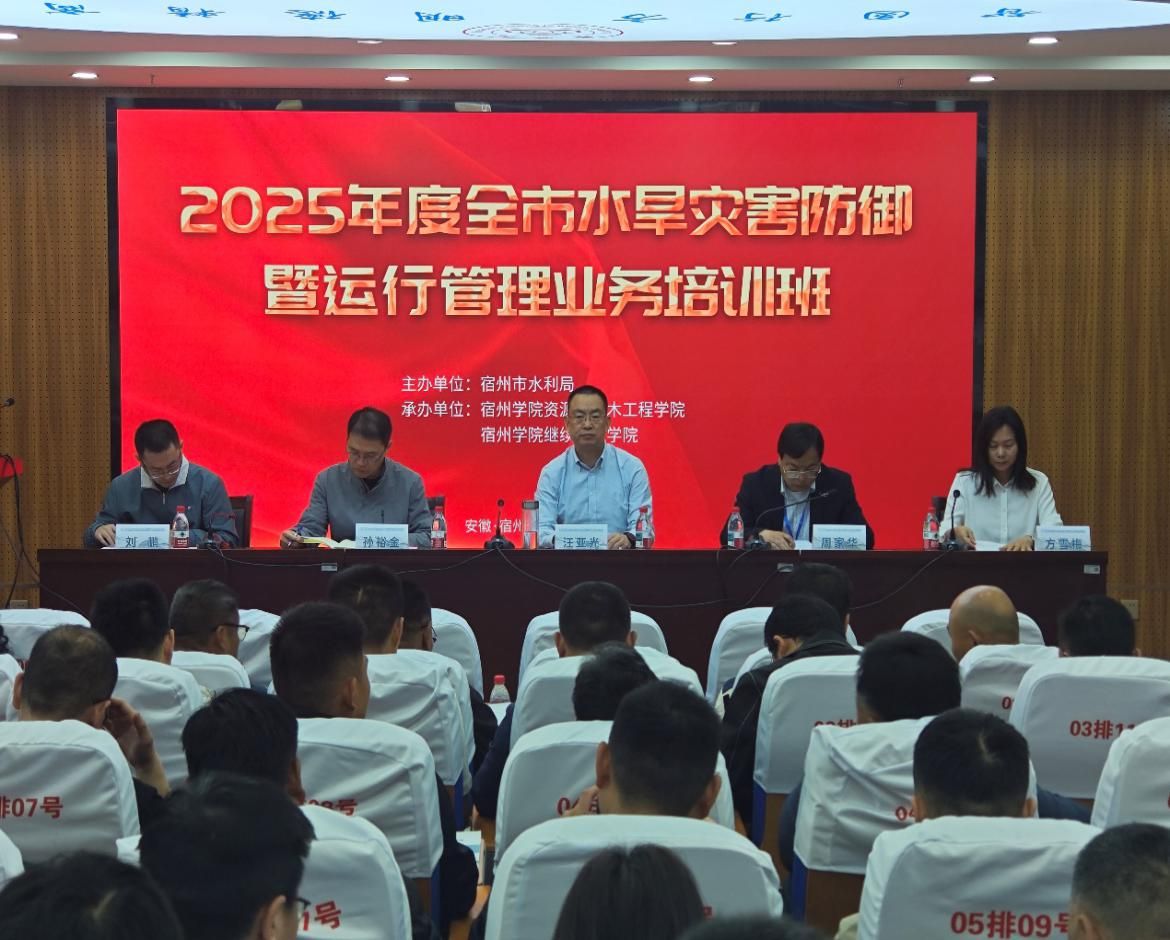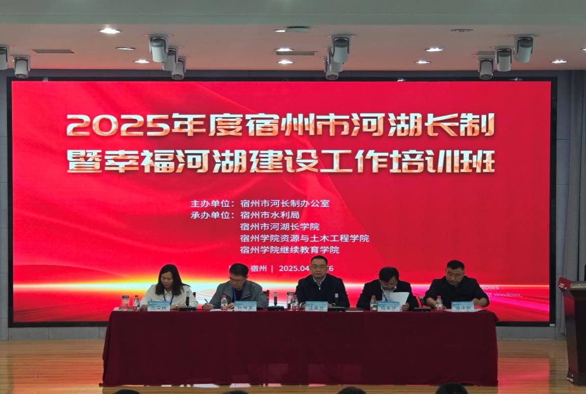 为深入学习贯彻党的二十大和二十届二中、三中全会精神,全面贯彻落实习近平生态文明思想和习近平总书记考察安徽重要讲话精神、重要指示精神,4月24—26日,宿州市2025年河湖长制暨幸福河湖建设工作培训班和水旱灾害防御及运行管理培训班在宿州学院教育园区校区举办,本次培训由宿州市水利局和宿州学院联合举办。各县(市、区)水利局分管领导、河长制办公室负责人和业务骨干、部分乡镇、村级河长等170余人参加培训。
