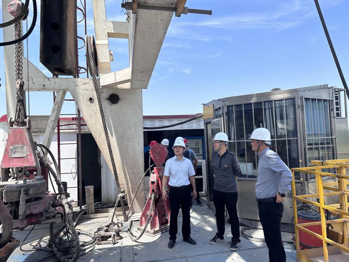 水文队党员代表领学了习近平给山东省地矿局第六地质大队全体地质工作者的回信,资源与土木工程学院党委副书记贾学彬领学了习近平的重要文章《朝着建成科技强国的宏伟目标奋勇前进》。水文队党委委员、副队长汪志祥介绍了水文队的业务范围、发展历程及未来规划。资源与土木工程学院党委书记孙裕金详细介绍了学院在学科建设、人才培养等方面的情况。双方共同参观了祁南项目现场,实地了解项目的施工环境、技术应用及工程难点。