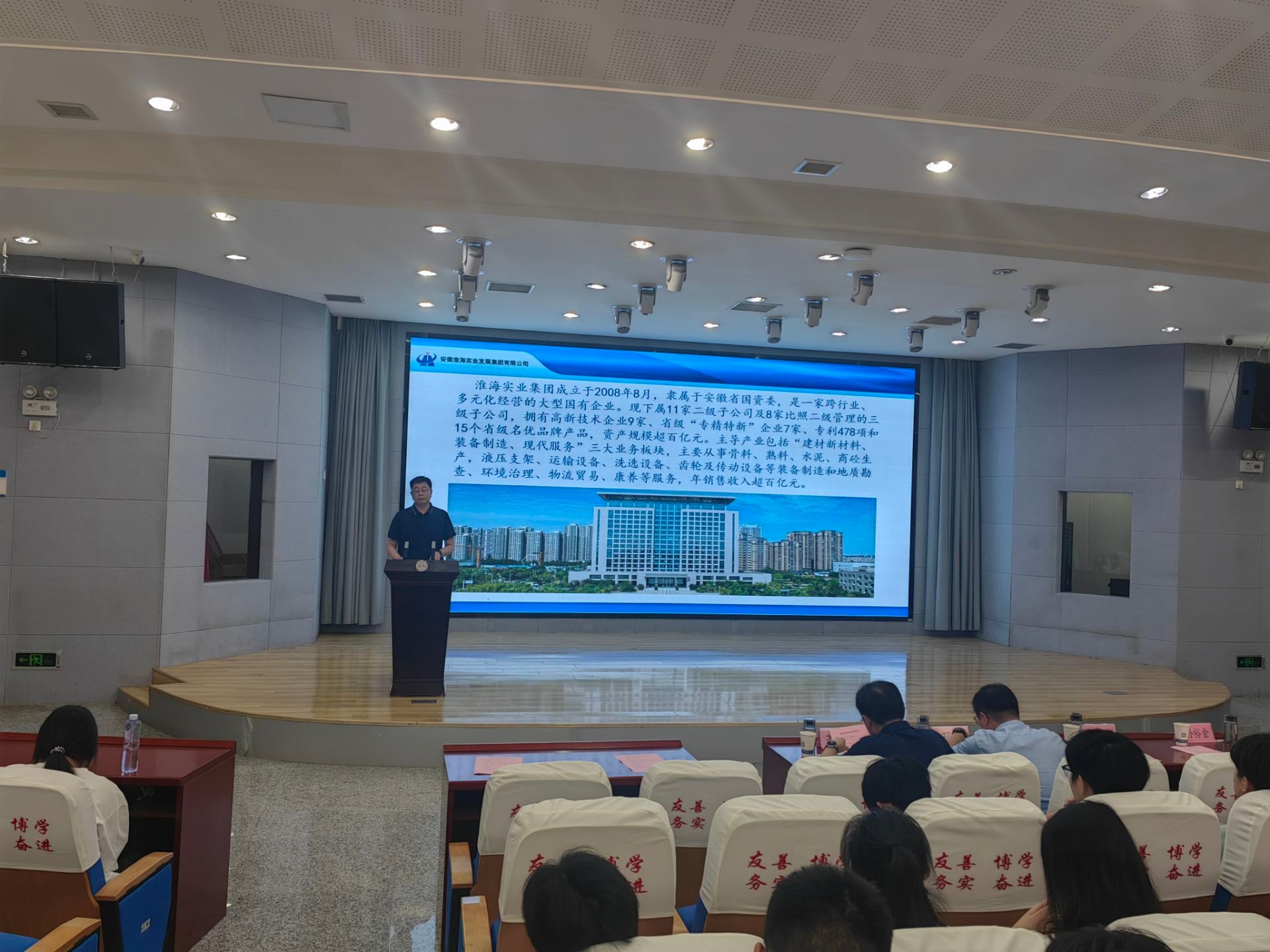 招聘会由贾学彬主持,首先代表学院向淮海实业发展集团公司一行表示欢迎,并感谢淮海实业发展集团长期以来给予的帮助。随后彭树强他从企业概况、旗下公司、平台建设和员工发展保障等方面进行了介绍。2025届的毕业班同学们分别就所关心的相关待遇问题做了咨询。有意向的学生也积极投递了个人简历,双方达成招聘意向的学生也随后与公司签订了合同。