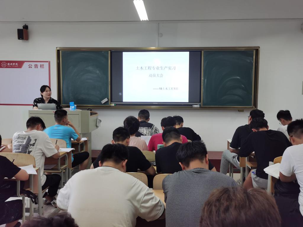 6月26日下午,资源与土木工程学院2018级土木工程班在实训楼A611教室顺利召开土木工程专业生产实习实习动员大会,旨在让每一位同学能够认识到生产实习的重要性,了解工程中的施工环节,熟悉施工工作的任务、方法、要求和内容,并进一步验证、加深和巩固课堂学习的理论知识。