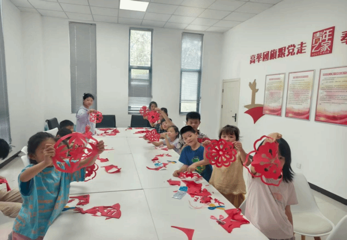 图2 志愿者带领孩子们体验传统剪纸技艺