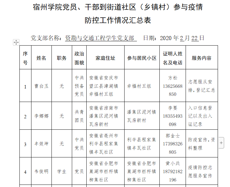 在疫情防控实践中,学生党员积极投身到实践活动中去。有的学生党员参加家乡的疫情防控志愿宣传,有的帮助家乡防控整理材料,有的学生党员负责登记,有的学生党员通过线上捐款,数额不多,但也是自己的一份心意,大家也积极分享了自己在疫情工作中的感受。