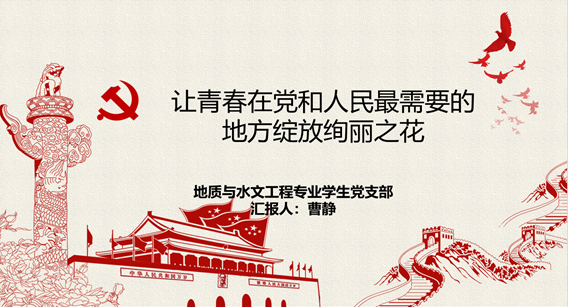 资源学院地质与水文工程专业学生党支部开展“让青春在党和人民最需要的地方绽放绚丽之花”微党课活动