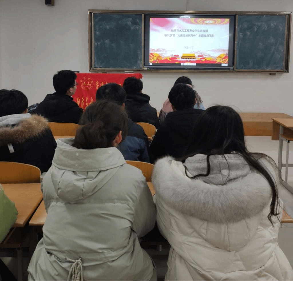 2021年1月7日,地质与水文工程专业学生党支部为了了解“人类命运共同体”这一重要理念的提出、发展和含义;为了理解当今时代背景下习近平主席倡导的构建“人类命运共同体”的价值和意义;为了继承和发扬合作共赢、共建共享的文明发展精神,在构建“人类命运共同体”的道路上贡献出属于我们中国青年的一份力量,充分展现中国共产党和中国政府的世界情怀和责任担当。特在工科楼A610组织支部全体成员开展组织学习“人类命运共同体”主题党日活动。活动由曹静主持,支部全体成员参加。