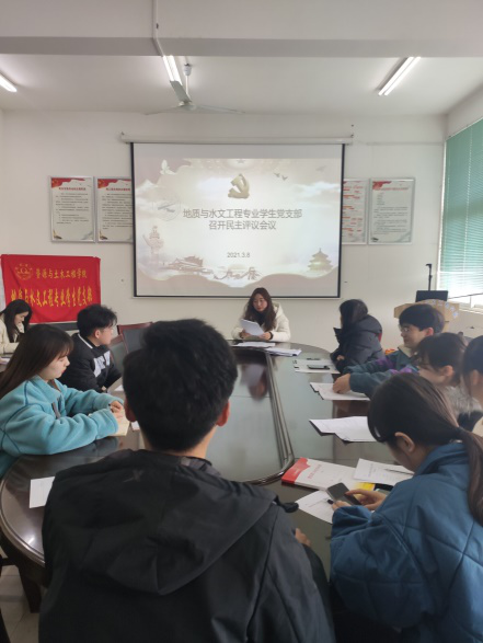 2021年3月8日,地质与水文工程专业学生党支部召开了2020年度民主评议党员会议。
